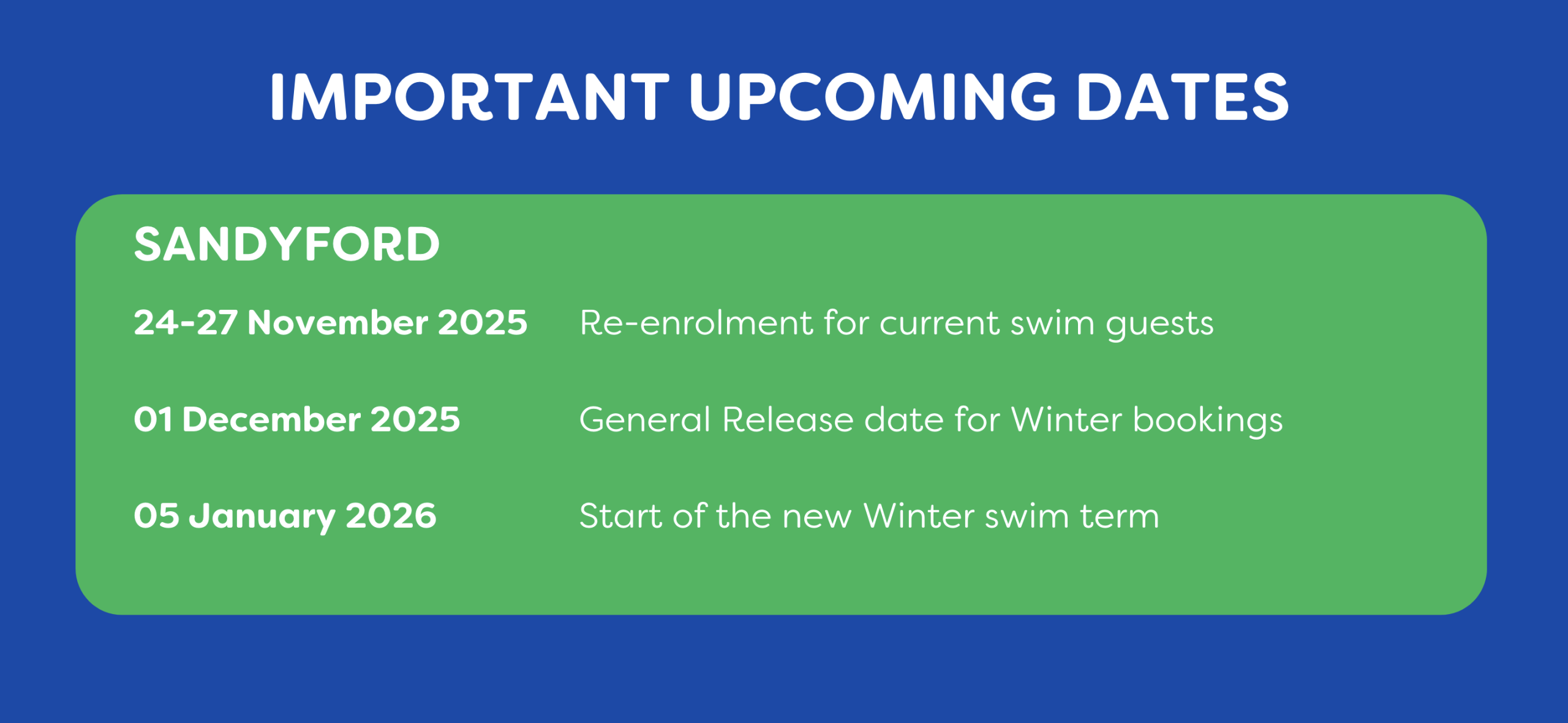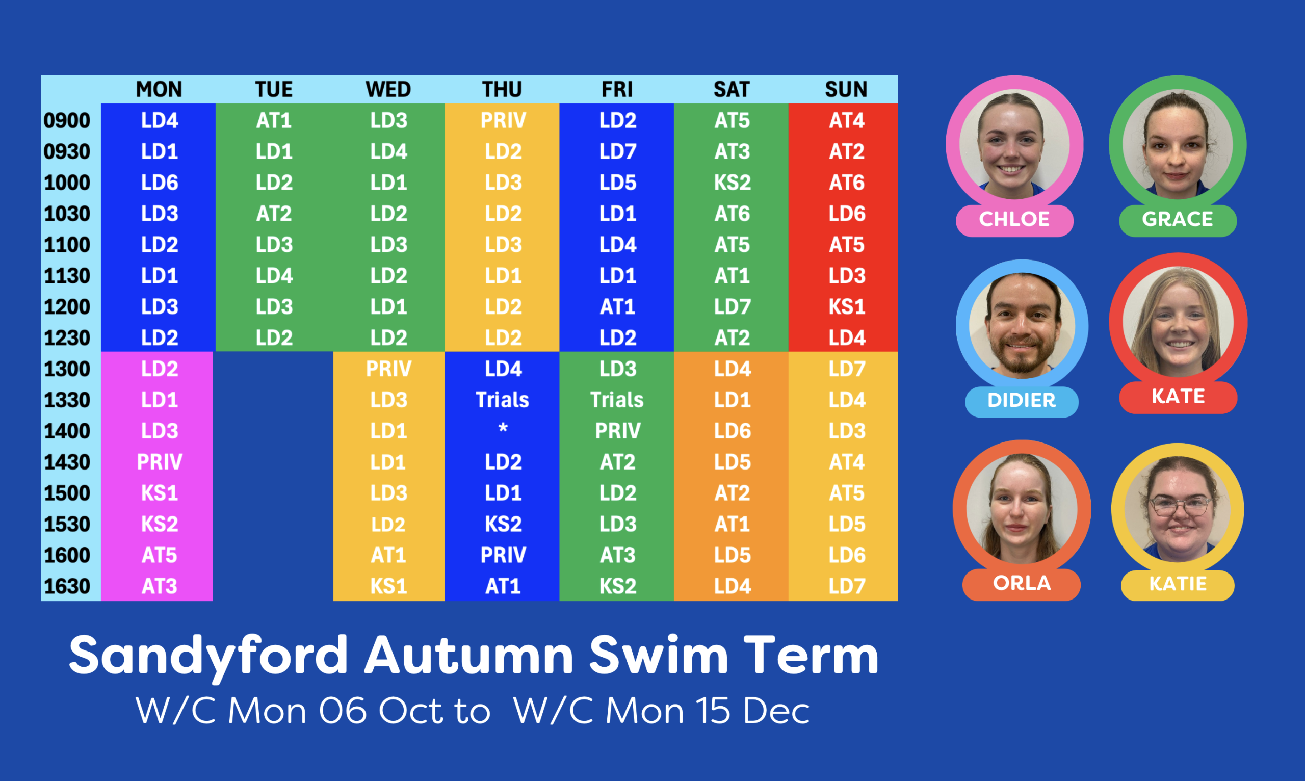A detailed daily calendar of the Autumn swim term will be displayed on Saturday 20th of September, two days before the online bookings go live.