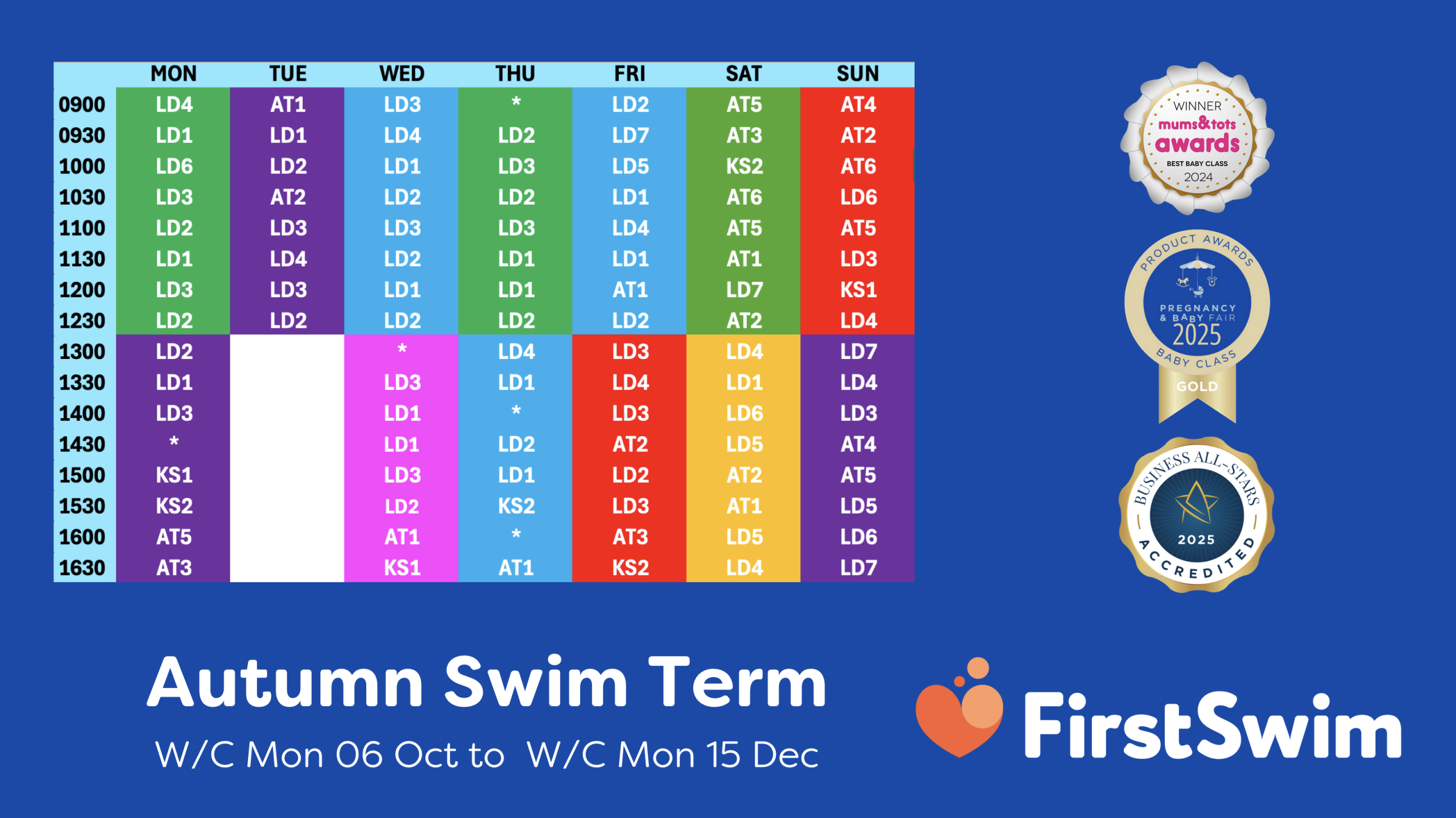 A detailed daily calendar of the Autumn swim term will be displayed on Saturday 20th of September, two days before the online bookings go live.