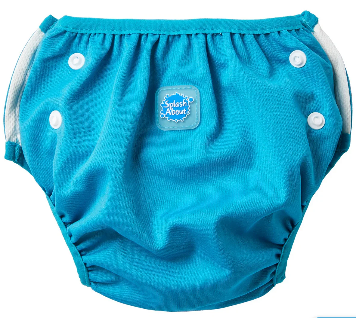 This practical blue swimming under nappy can easily adjust into small, medium, and large sizes in a snap of a popper, to grow with your baby. Designed to be used as part of the Happy Nappy Double Layer System for swimming lessons, it will fit neatly and securely under the Happy Nappy for extra protection against leaks in the pool.